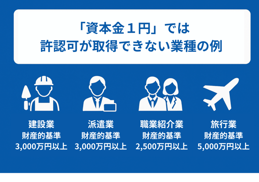 ※古物商許可のように、資本金の要件がない許認可も一部存在します。