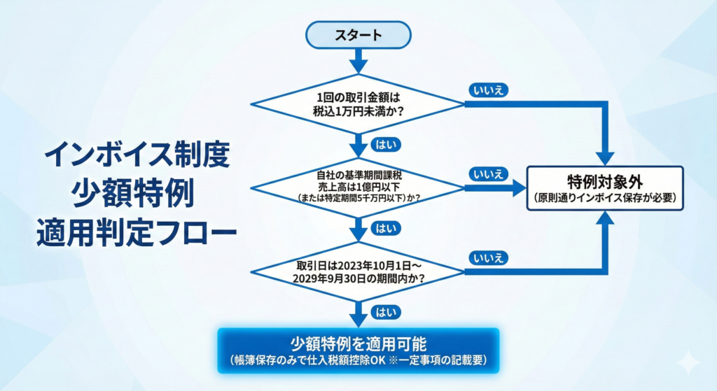 • 何が楽になる? → 対象の取引はインボイスの保存が不要になります。(ただし帳簿への記録は必要です)