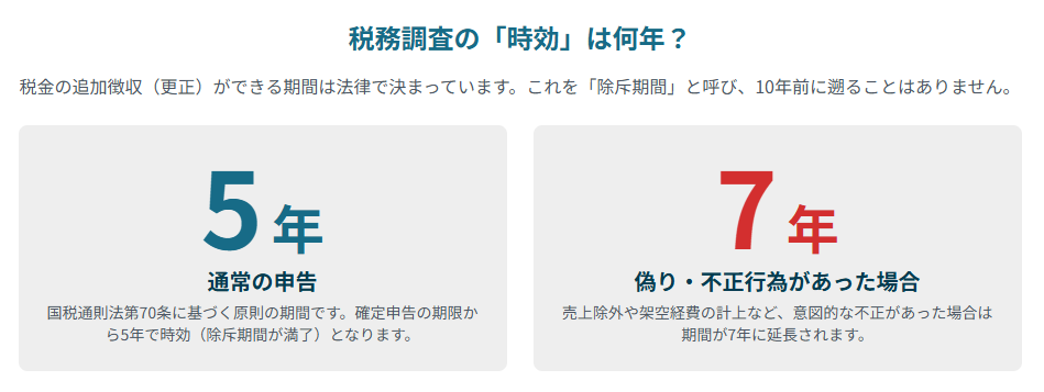 関連記事:税務調査は過去何年分?原則「3年」、最大「7年」の法則を解説します |ほまれ税理士法人