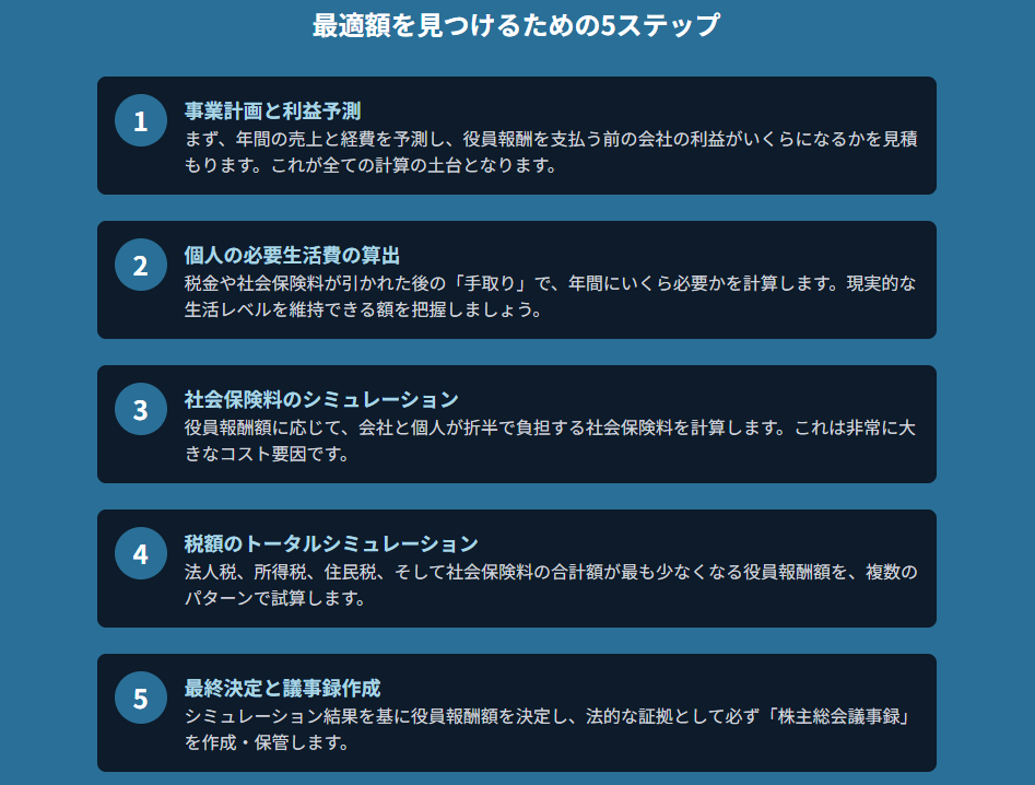 Step 4:Step 3で残るお金から『役員報酬額』を決定する