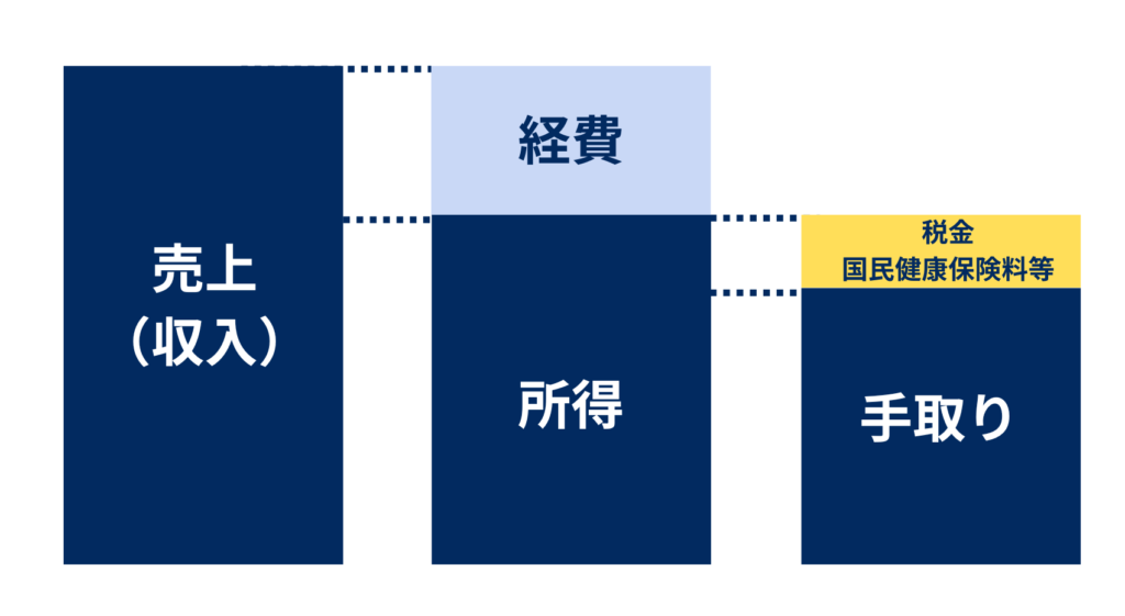 自営業者にとって「年収」とは、単なる売上ではなく、経費を引いた「所得」を正しく理解することから始まります。そして、その所得から税金や国民健康保険料等を引いた「手取り」をいかに増やすかが、事業を続け、生活を豊かにするために重要です。