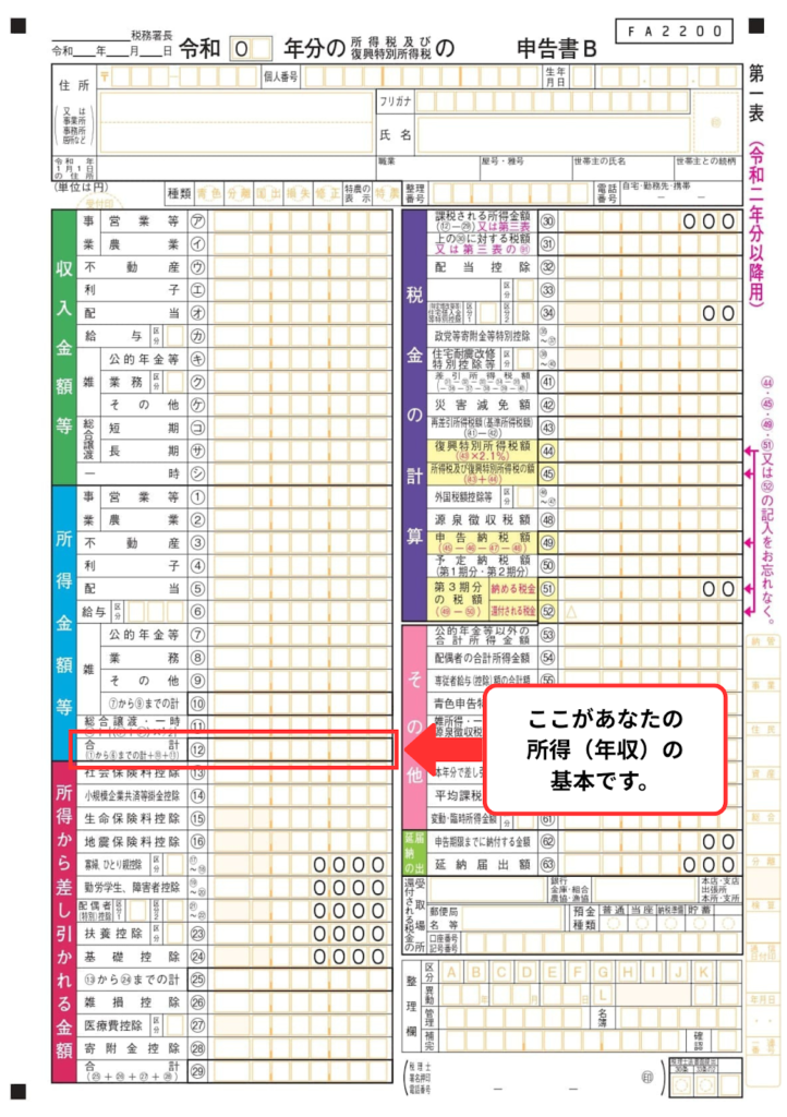 個人事業主が「年収は?」と聞かれたとき、答えるべきなのは、原則として確定申告書に書かれた「所得金額」です。